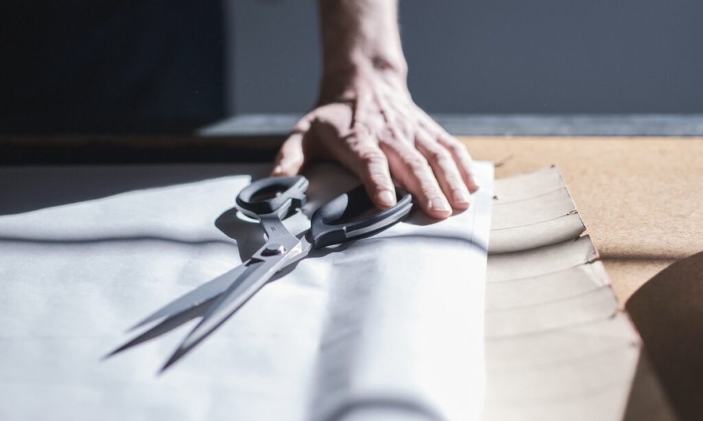 例えは、アトリエ内で出る糸くずや裁断くずは全て定期的に回収され、建築資材に使うための加工工場に運ばれます。